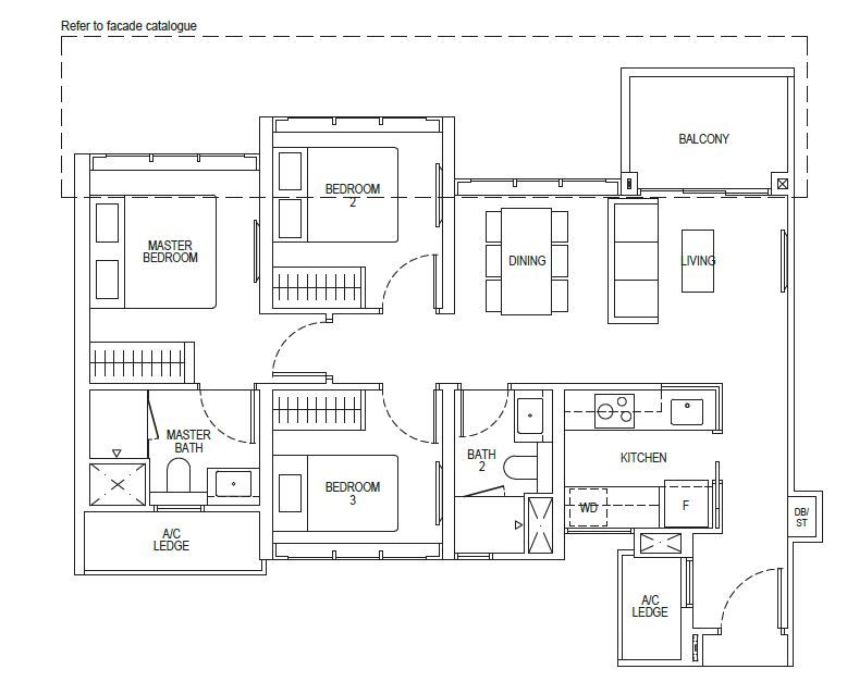 | 1 Bedroom + Study | 495 - 667 | 102 |