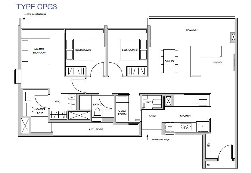 | 3 Bed + Guest (P) | 1259 - 1302 | 74 |