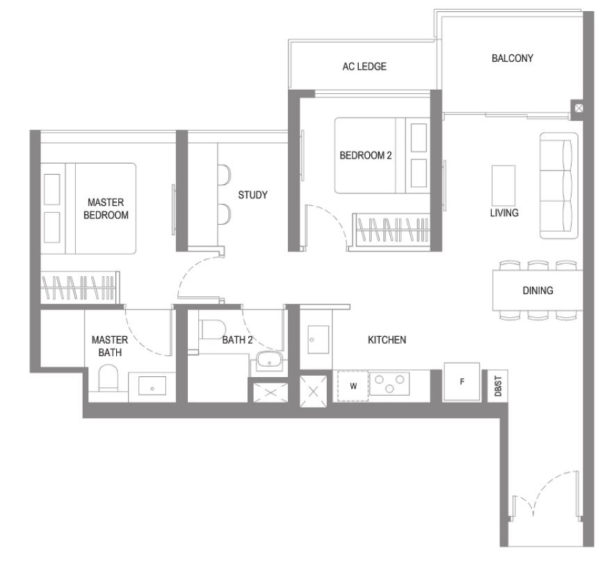 Type: C5S (3 Bedroom + Study)   Size: 1141 Sqft / 106 Sqm